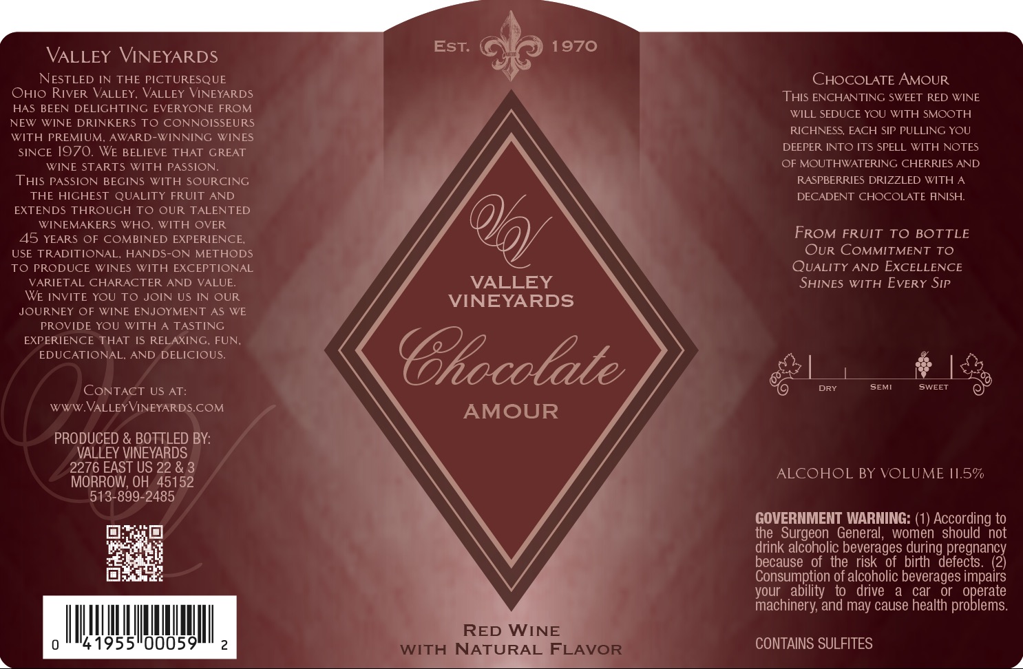 Sweet, rich red wine with notes of mouthwatering cherries and raspberries drizzled with a decadent chocolate finish.