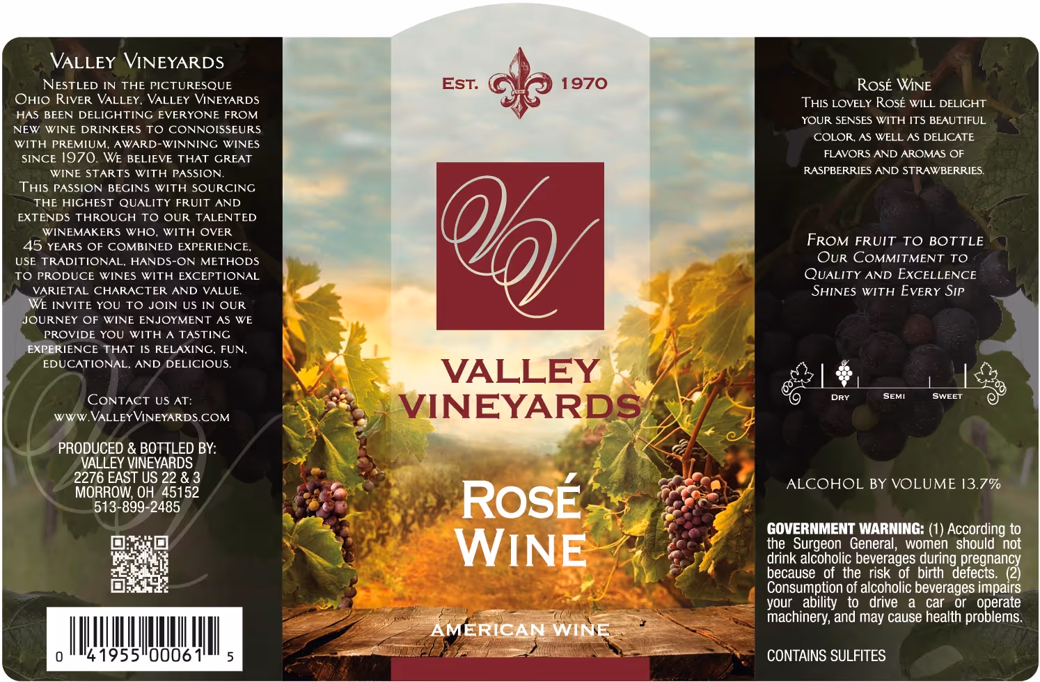 This medium-bodied blush wine exhibits a complex set of aromas and flavors – citrus and apple, fresh butter, vanilla, and honeysuckle - culminating in a cool, crisp character.
